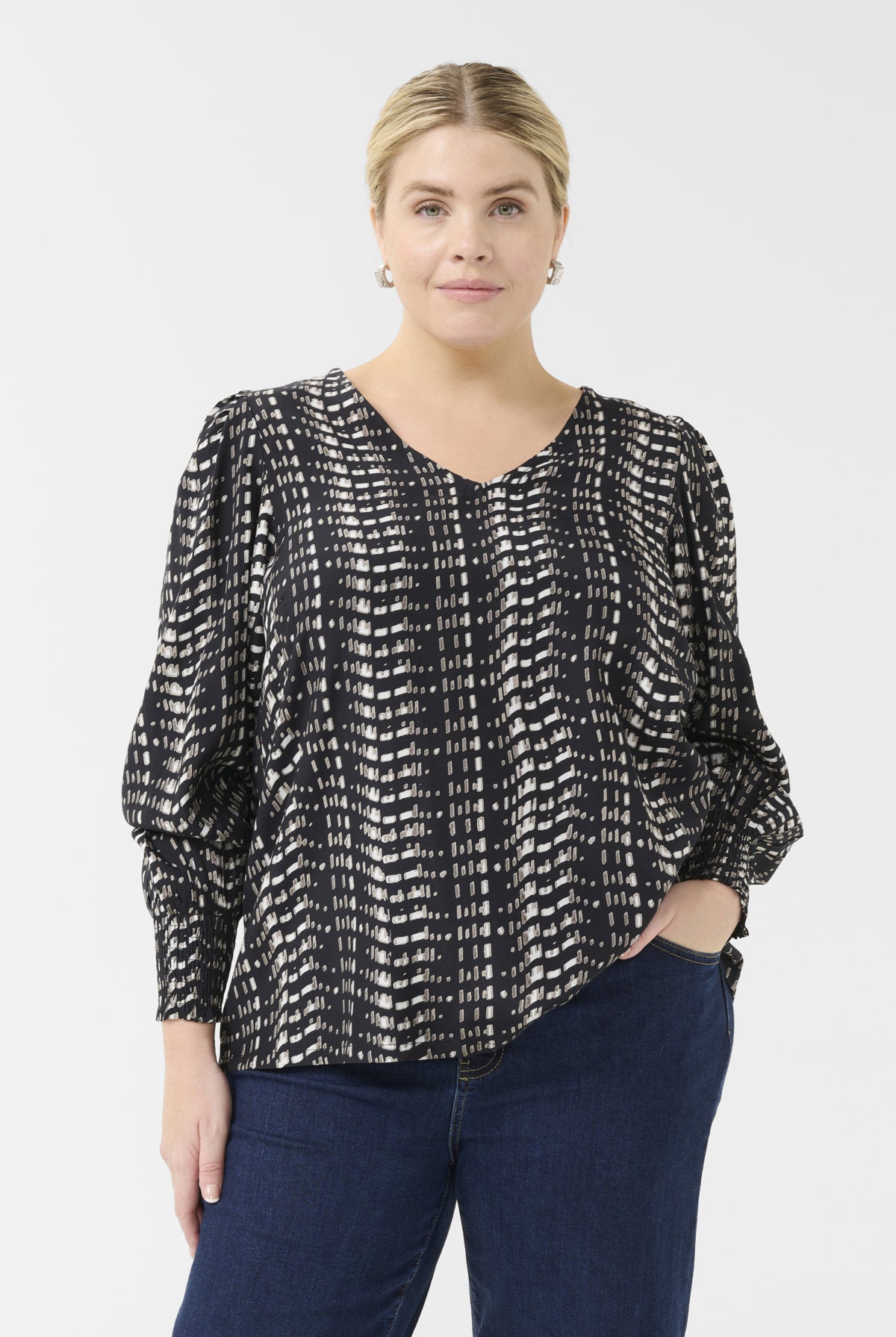 Bobbel bluse 3/4 ærme "KCalvina" - Sort