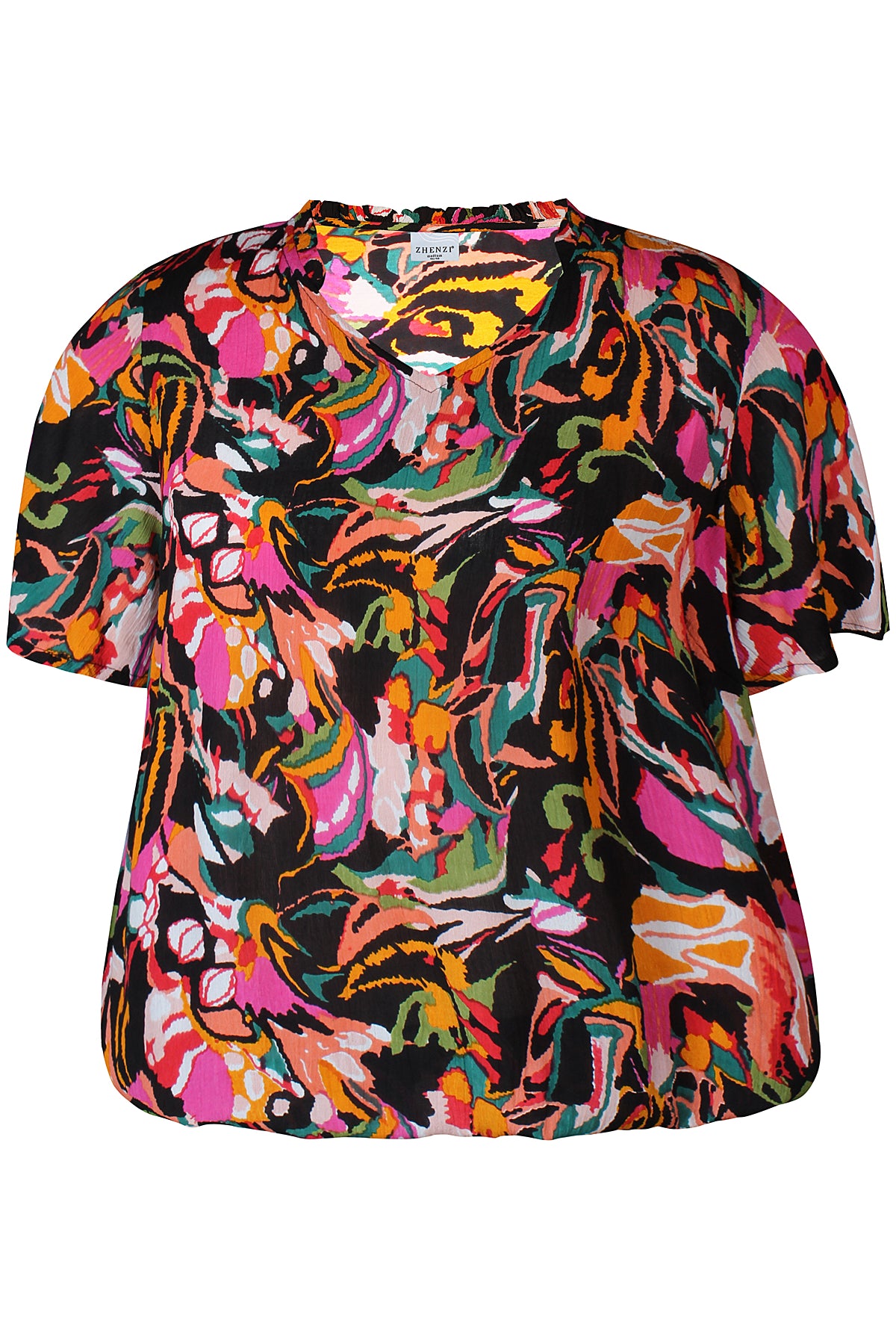 Crepet bluse med elastik i taljen "ZH-Sini" - Sort