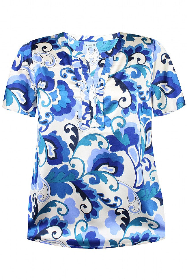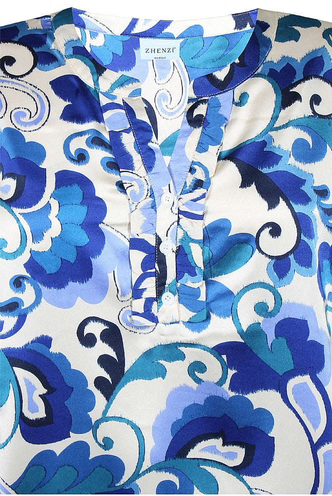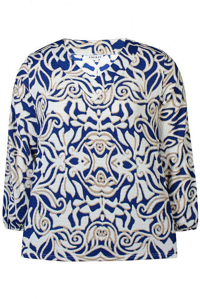 Fantastisk flot bluse fra Zhenzi - Lapis Blå/Beige