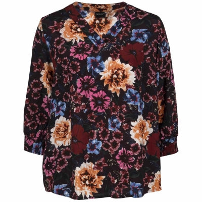 Smukkeste "Beth" Bluse i viskose - Plum/Blomst