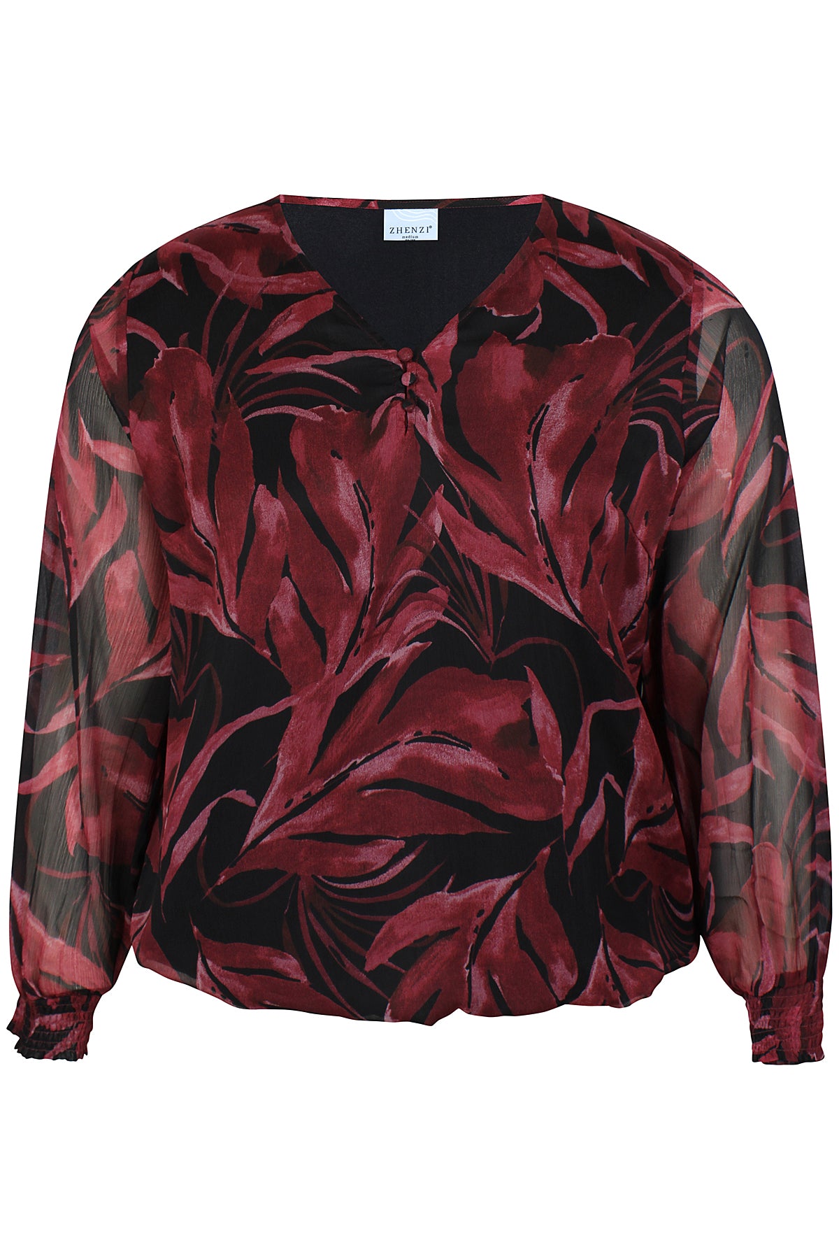 Blusen er i chiffon gennemsigtig på ærmerne,