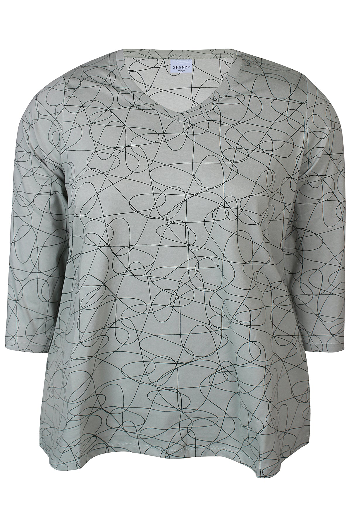 Basis bluse med mønster, 3/4 ærme og V-hals.