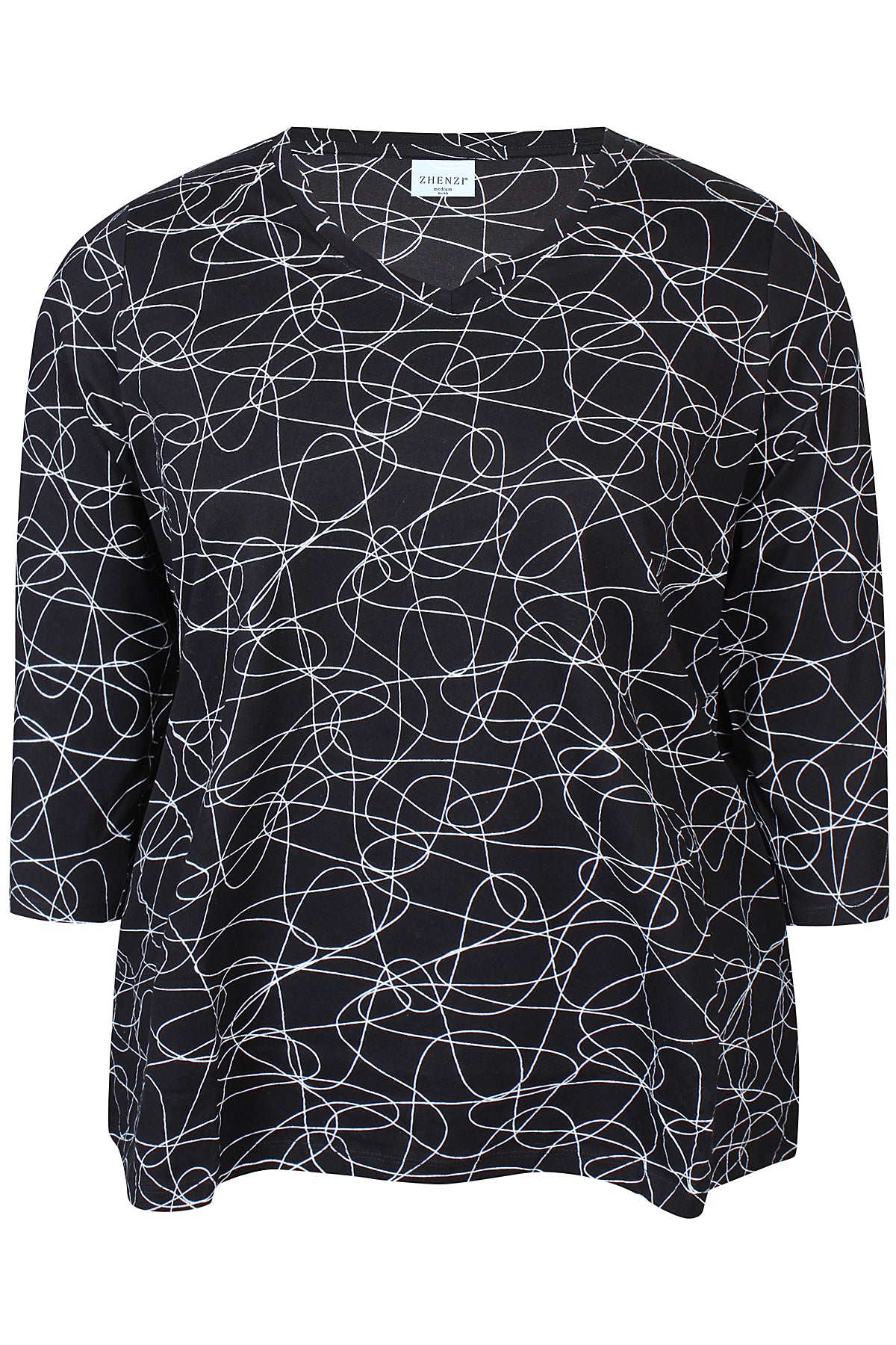 Basis bluse med mønster, 3/4 ærme og V-hals.