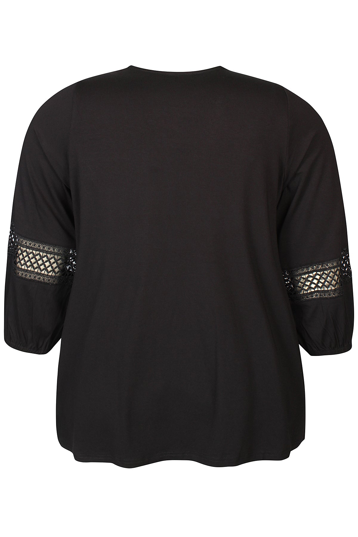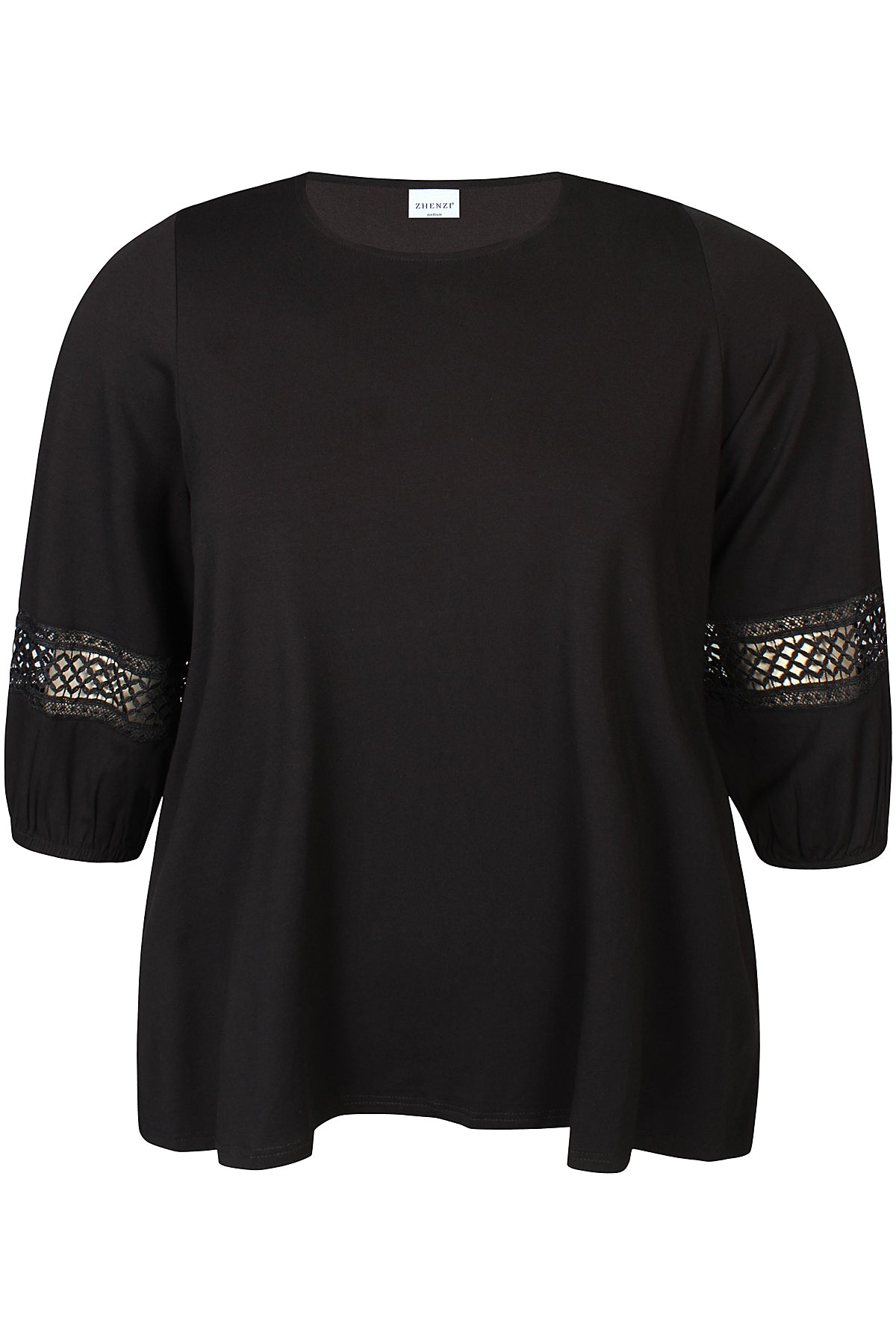 Fin blondekant på ærmet og elastik i kanten af det 3/4 ærme.