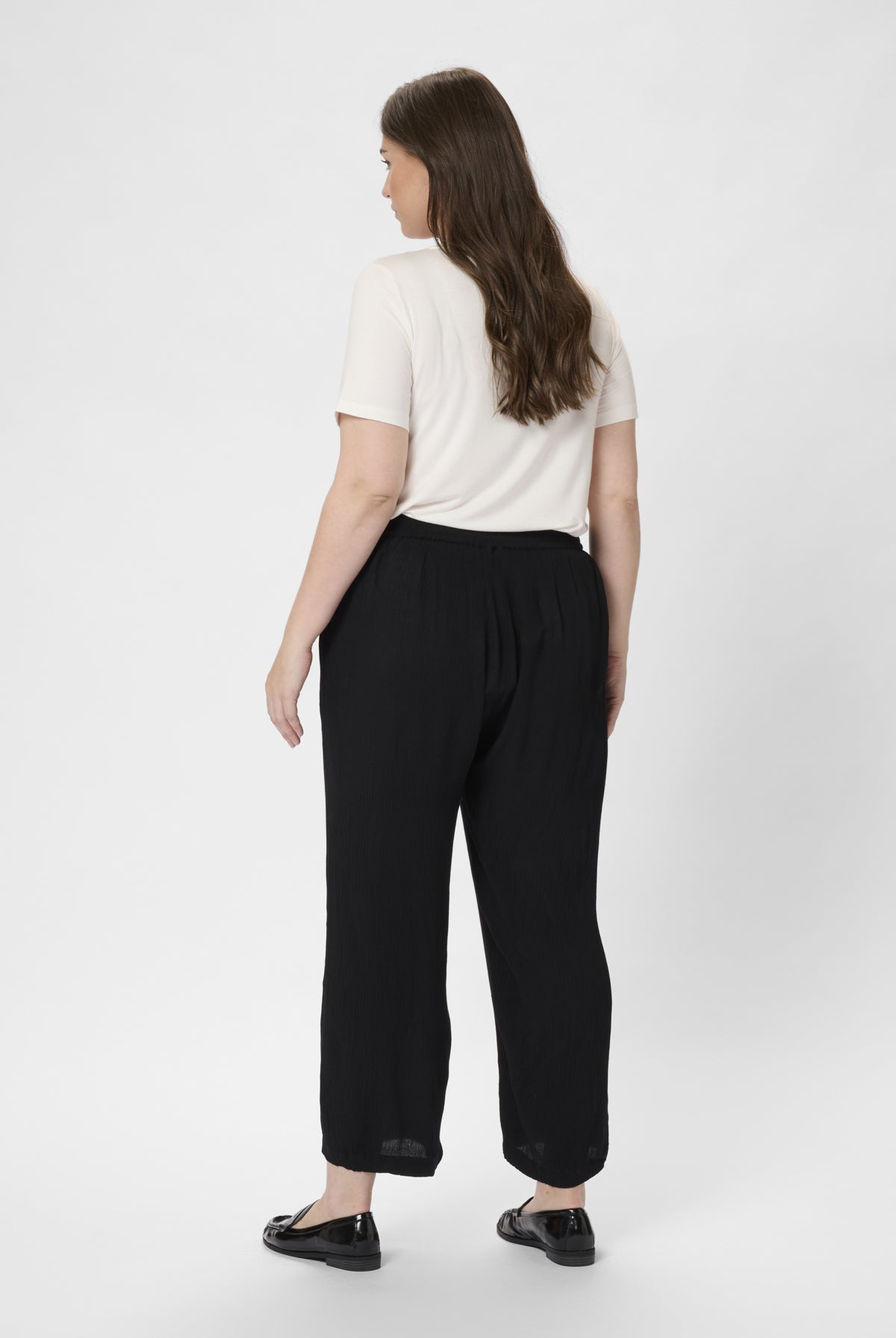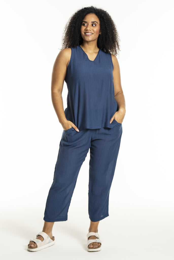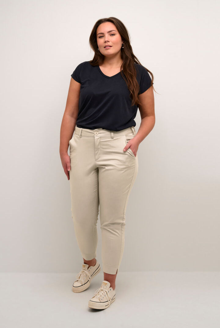 Du går aldrig galt i byen med et par bukser lavet i bomuld, her er du sikker på at du får et par super komfortable bukser, du ikke har lyst til at tage af igen. Bomuld er et skønt materiale, når man laver bukser til store piger, da det er et stof der kan give sig meget, og derfor er du sikker på at alle kurverne kan være der, uden at det føles ubehageligt.
