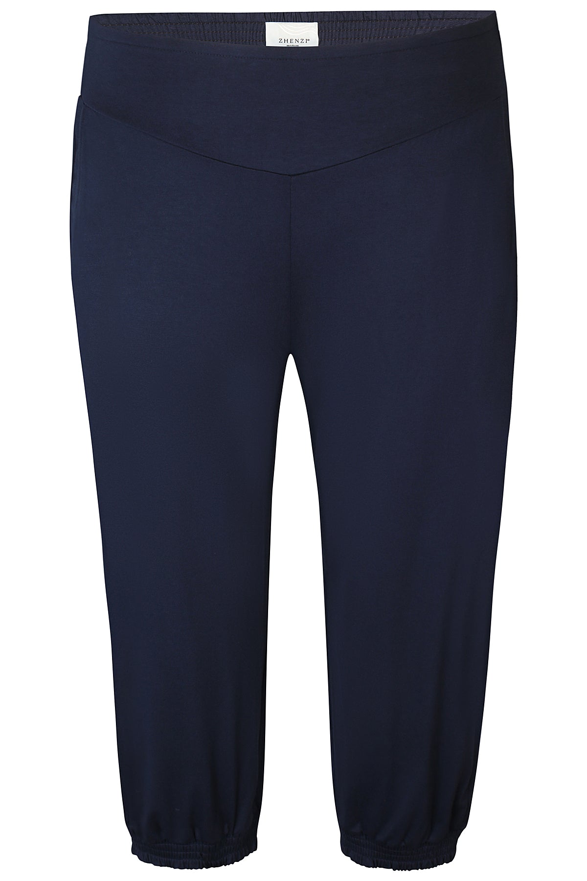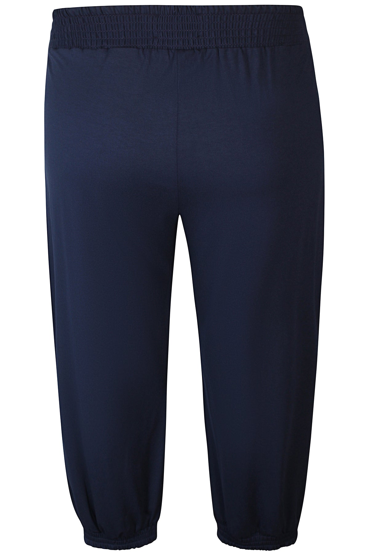 Ensfarvet 3/4 buks med bred elastik - Marine