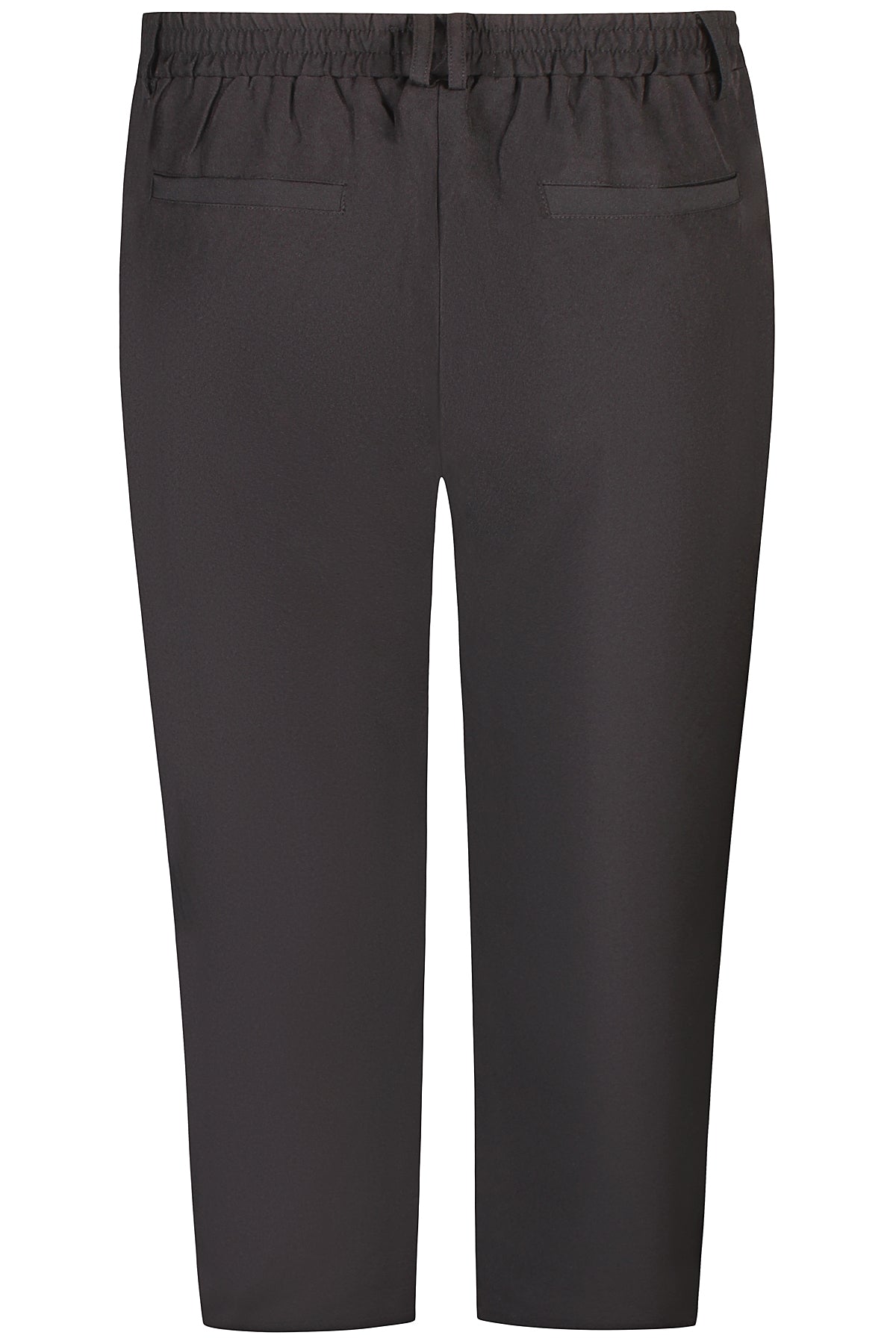Buksen har fast talje foran og elstik bagpå, der er bælte stropper i.