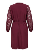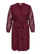 - Detaljer : Bælte i taljen, Bælte medfølger, Bæltestropper, Blondedetalje, Lægdetalje
