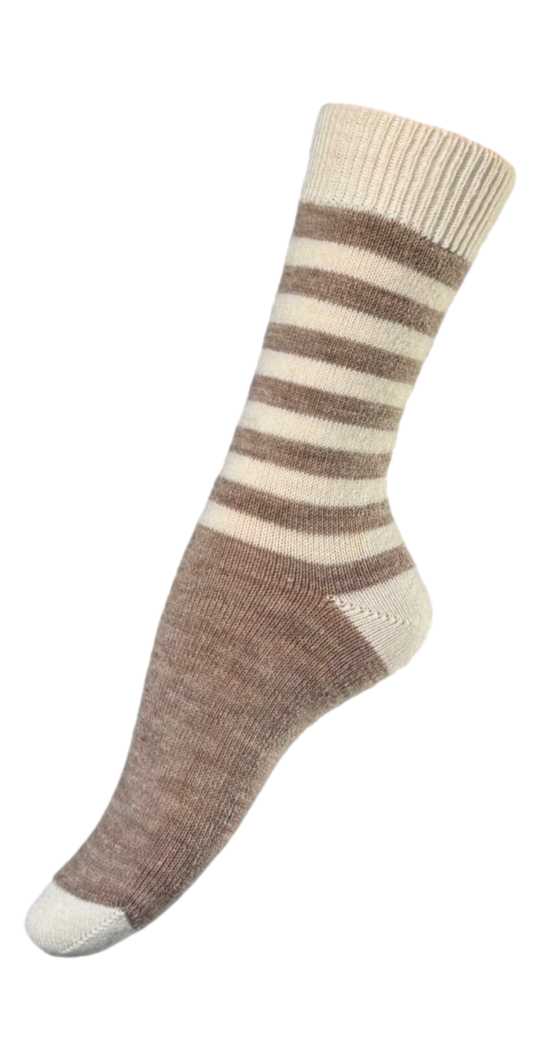 Stribet Alpaka strømpe - Sand