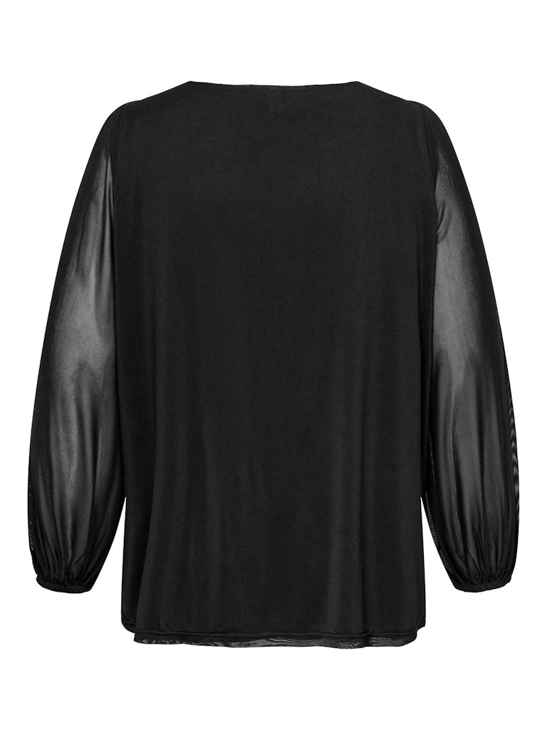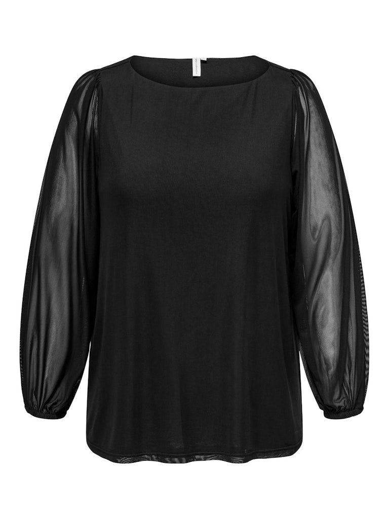 Mesh bluse med bådhals - Sort