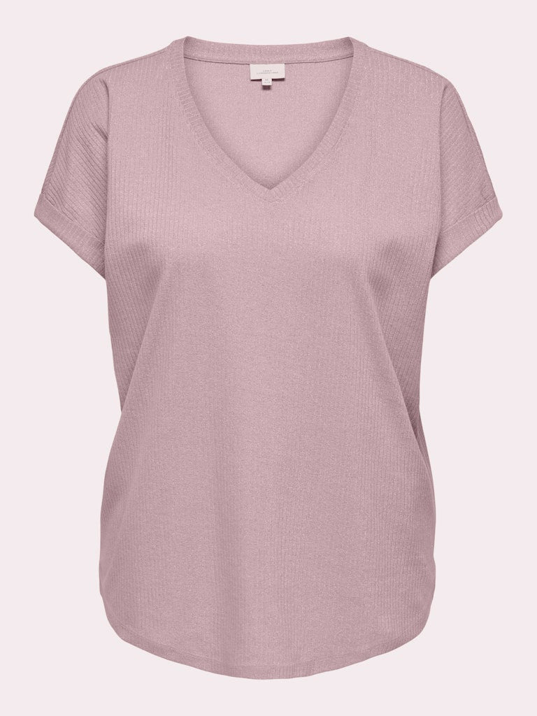 Produkttype : T-shirt med glimmer i. Hals : V-hals Ærme : Korte ærmer Kropstype : Curve Pasform :... Læs mere og se produktmål
