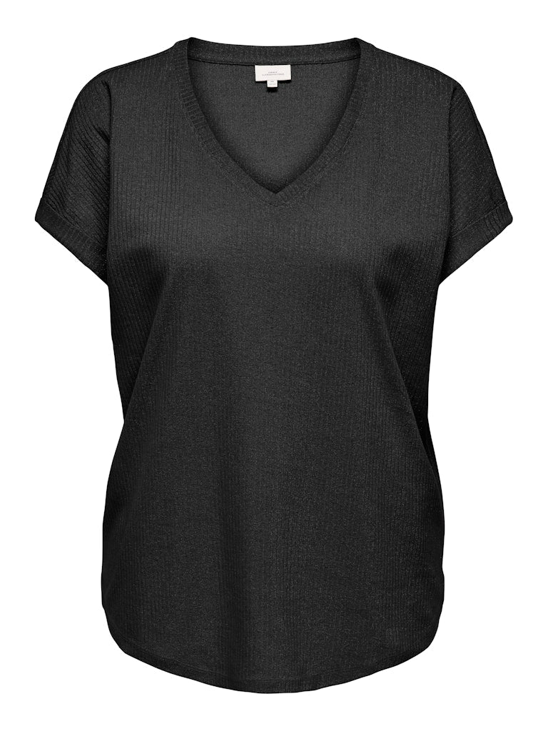 Produkttype : T-shirt med glimmer i. Hals : V-hals Ærme : Korte ærmer Kropstype : Curve Pasform :... Læs mere og se produktmål