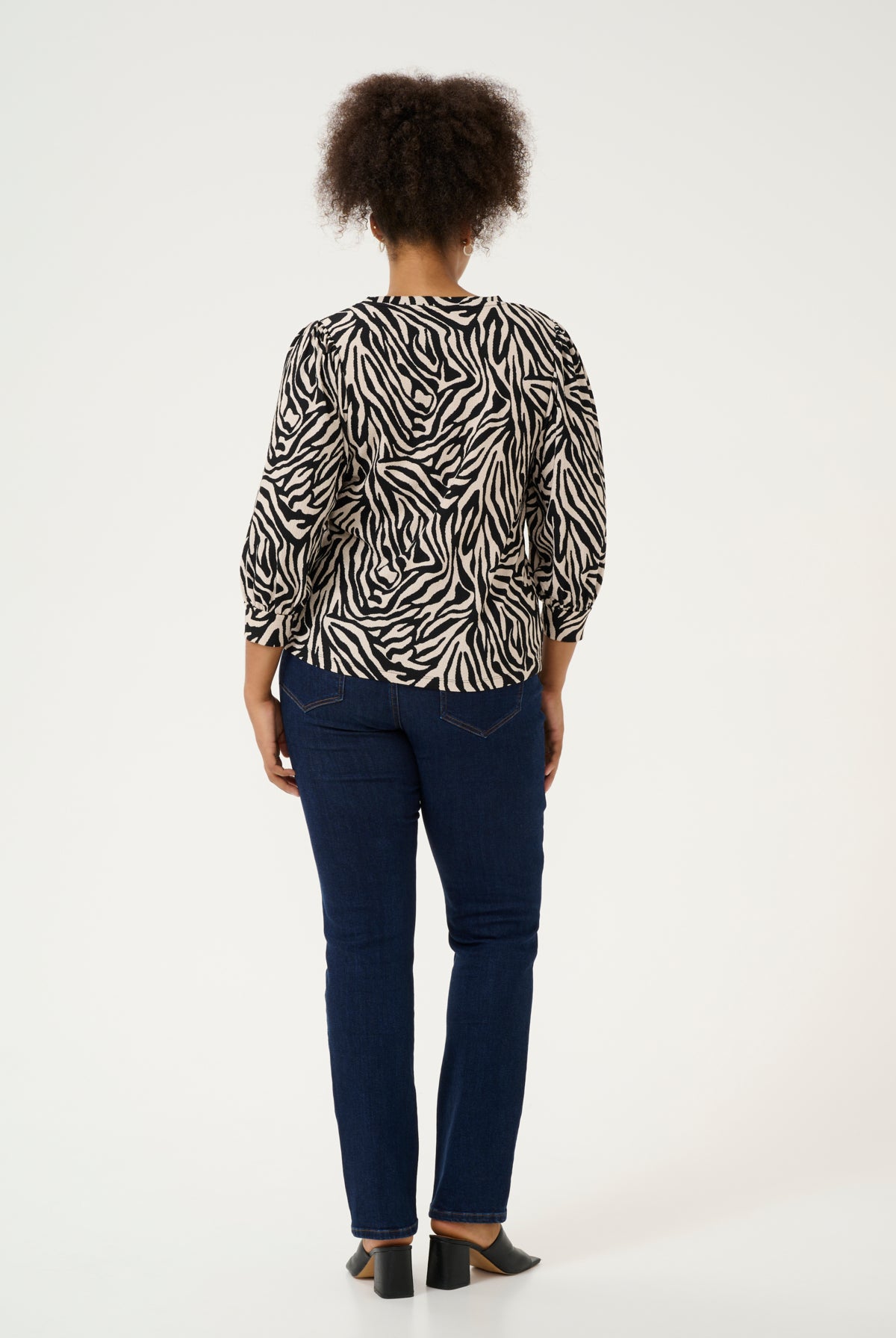KCIVENA - Bluse i Zebra print - Sort/råhvid