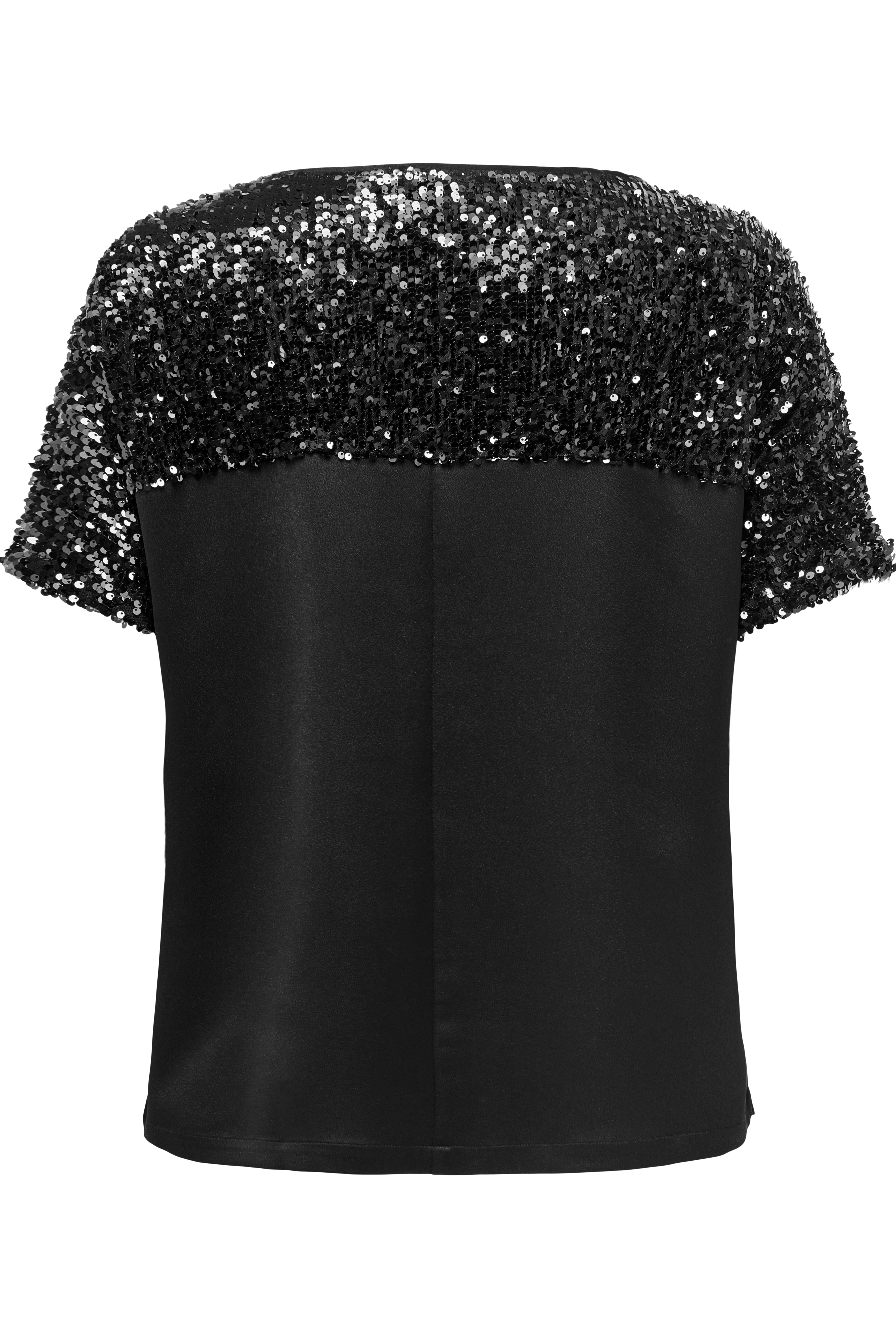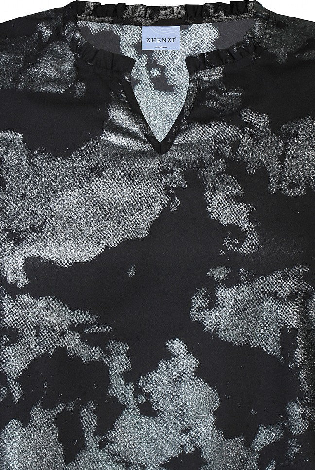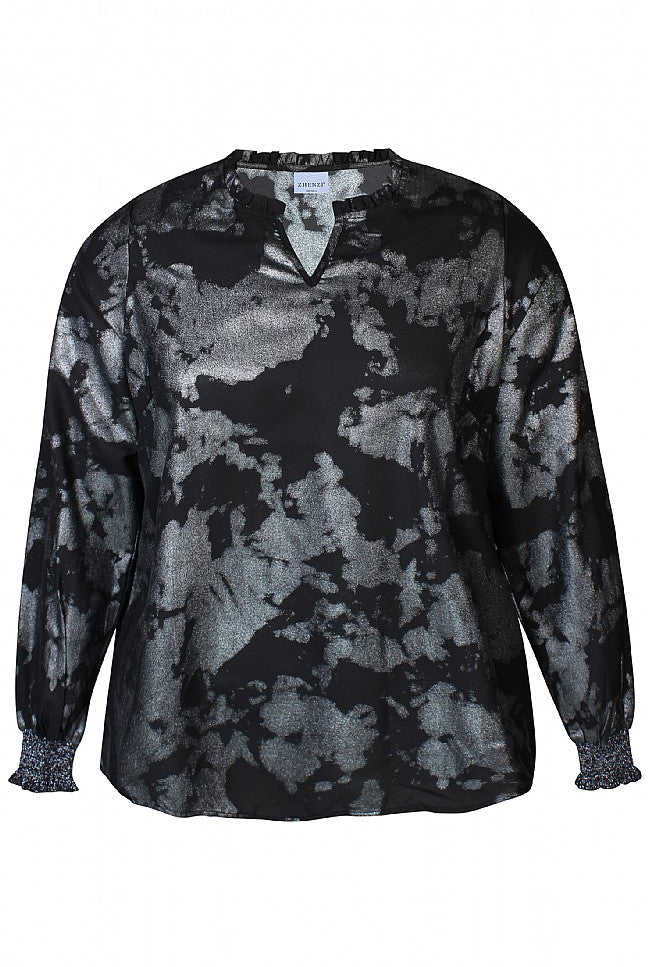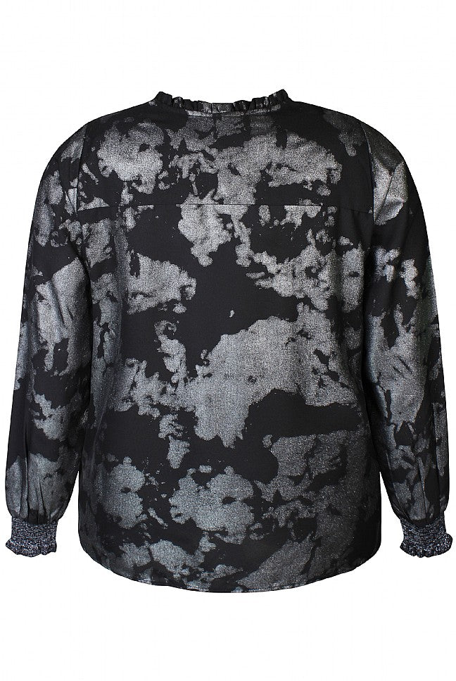 Super flot skjortebluse m/metallic-look - Sort/Sølv