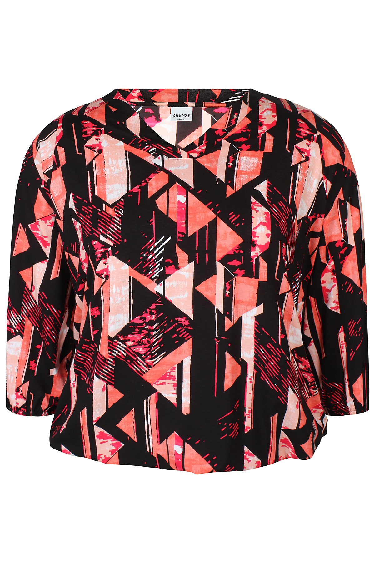 Blusen har 3/4 lange ærme og talje med elastik.