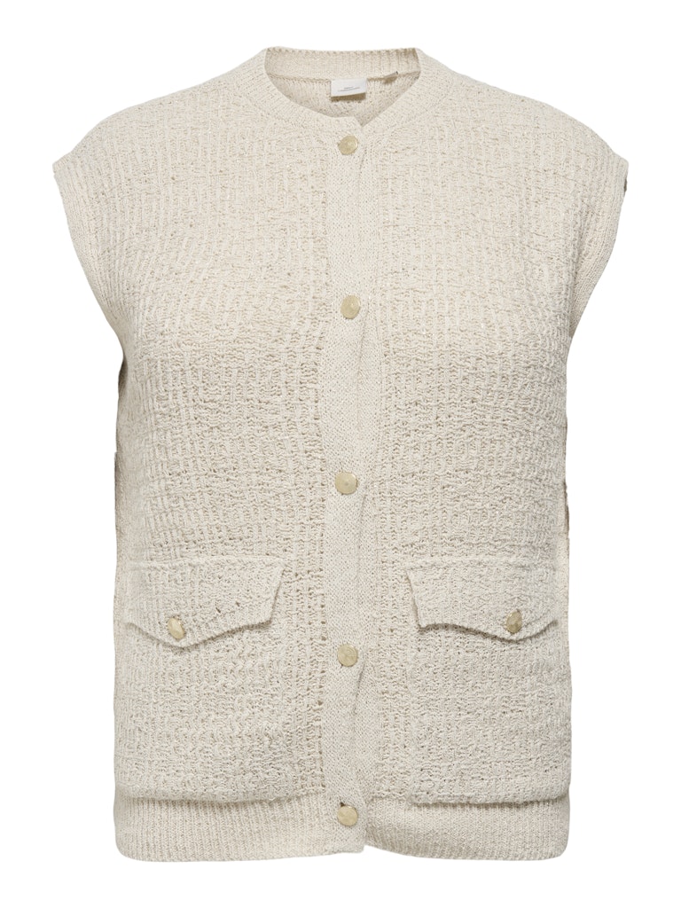 Strik vest med guldtråd - råhvid