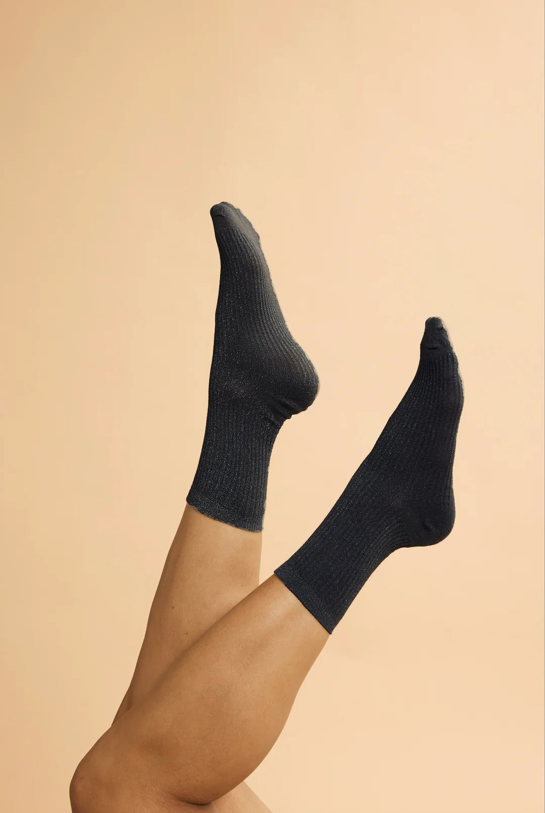 Smarte ankelsokker med glimmer fra Zhenzi. De er onesize.