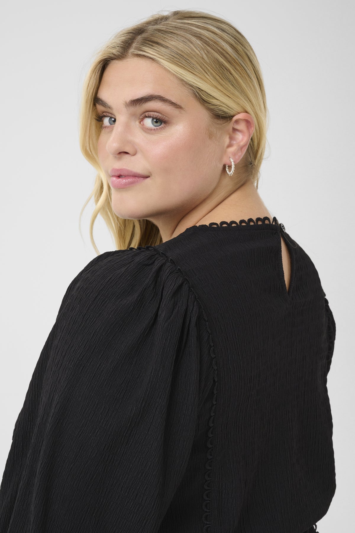 Bobbel bluse 3/4 ærme "KCalvina" - Sort