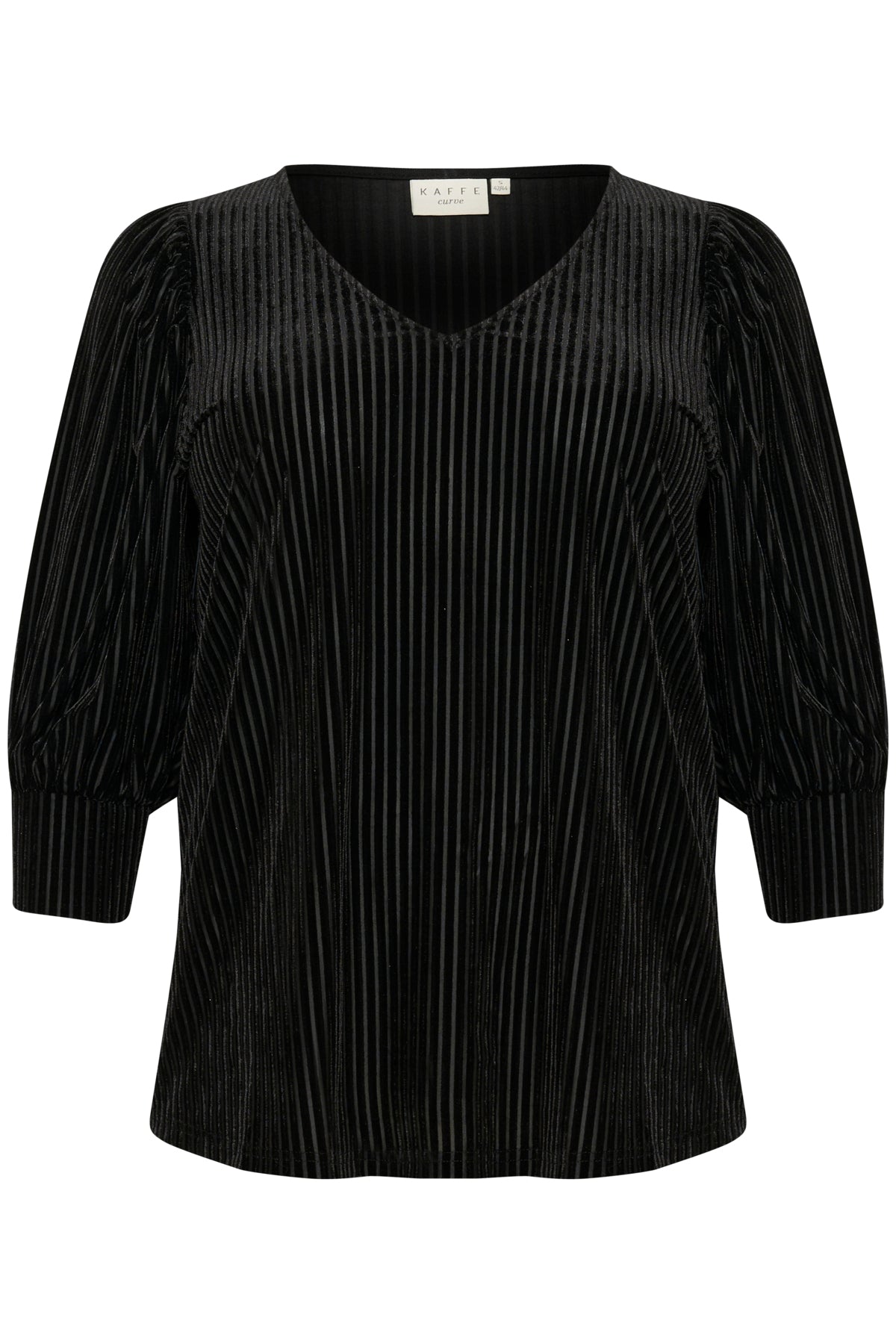 Blusen er i lækker "stribet" velour - og changerer virkelig smukt i den klassiske sorte