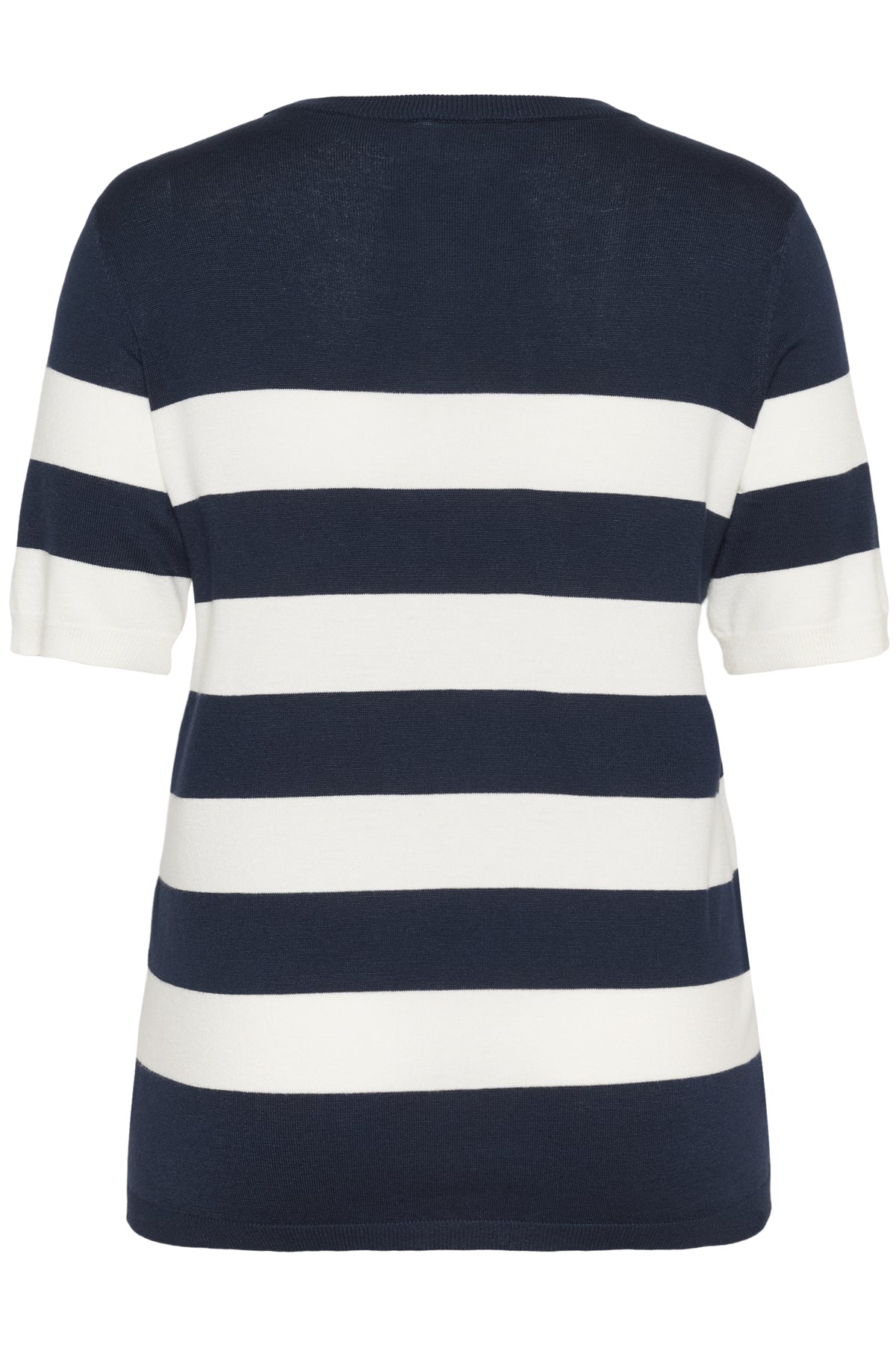 Pulloveren har en fin rund hals og korte ærmer.