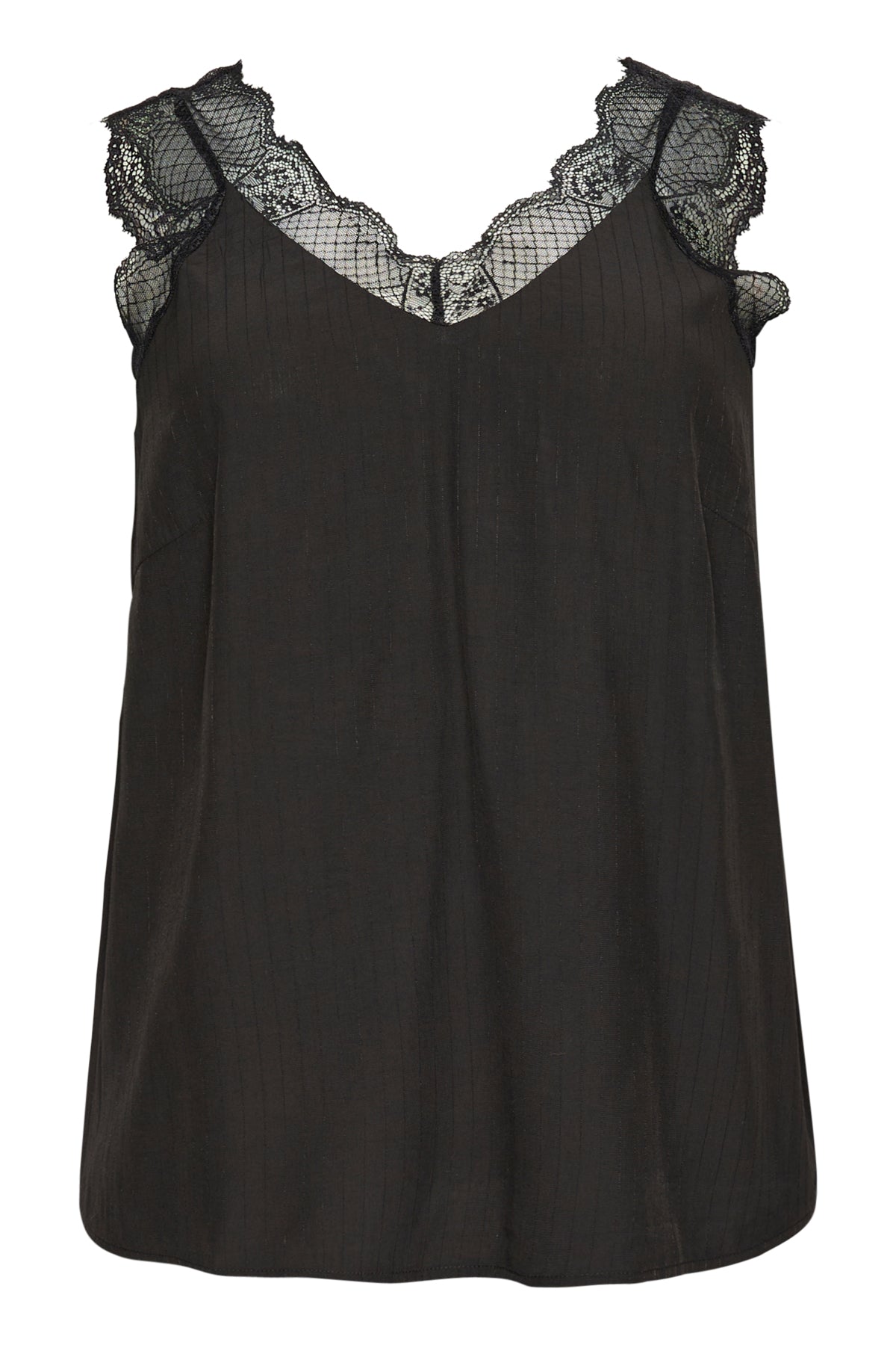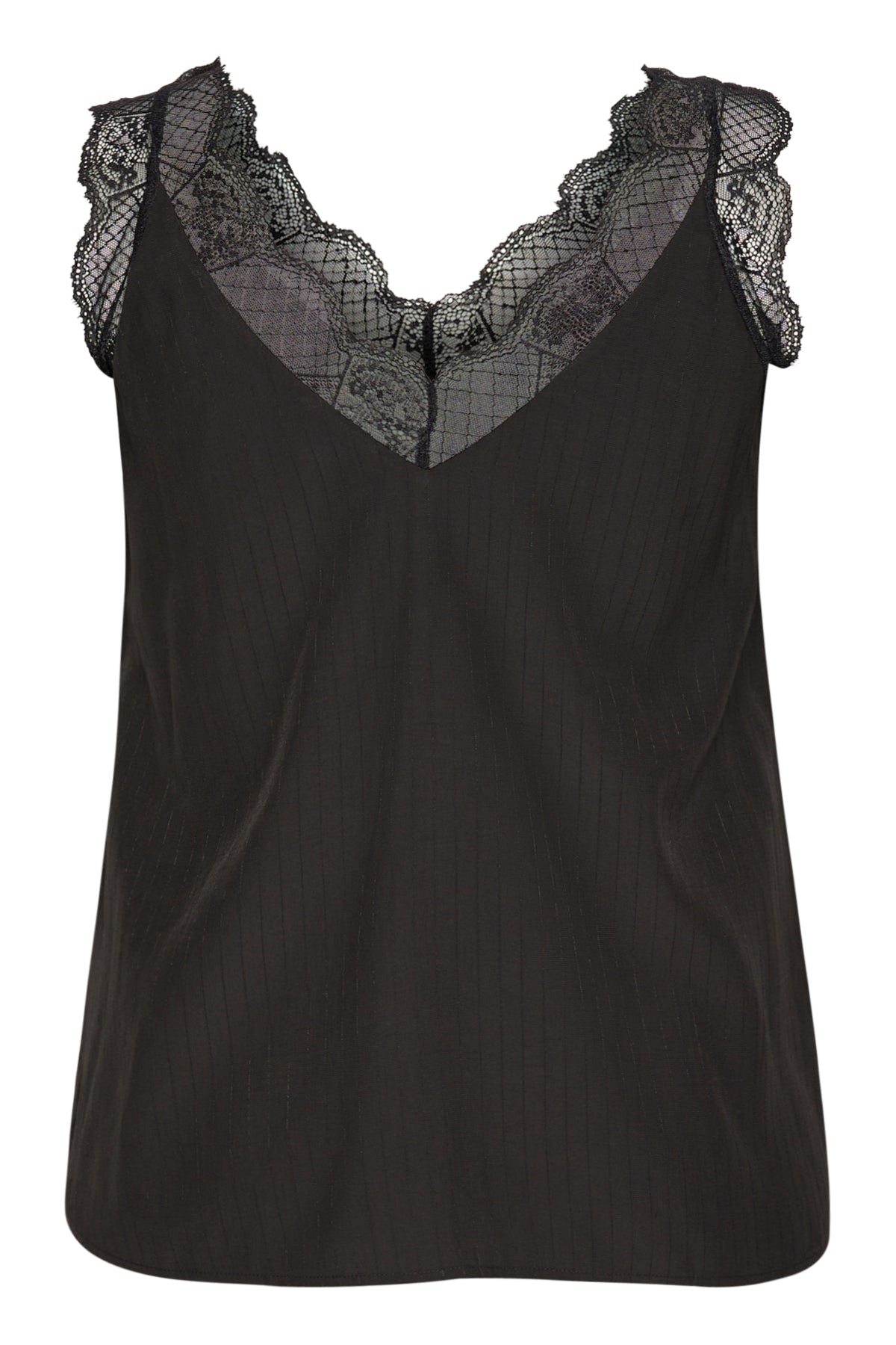Flot top med blondekant i halsen både foran og bagpå. Diskrete striber i stoffet, som giver et flot... Læs mere og se produktmål