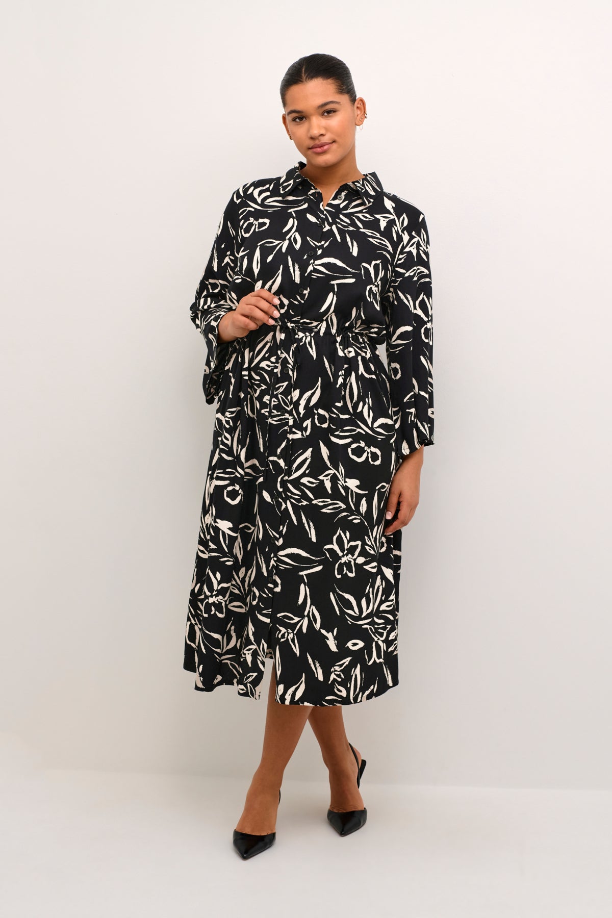 Kjolen er gennem knappet og har 7/8 del ærme.