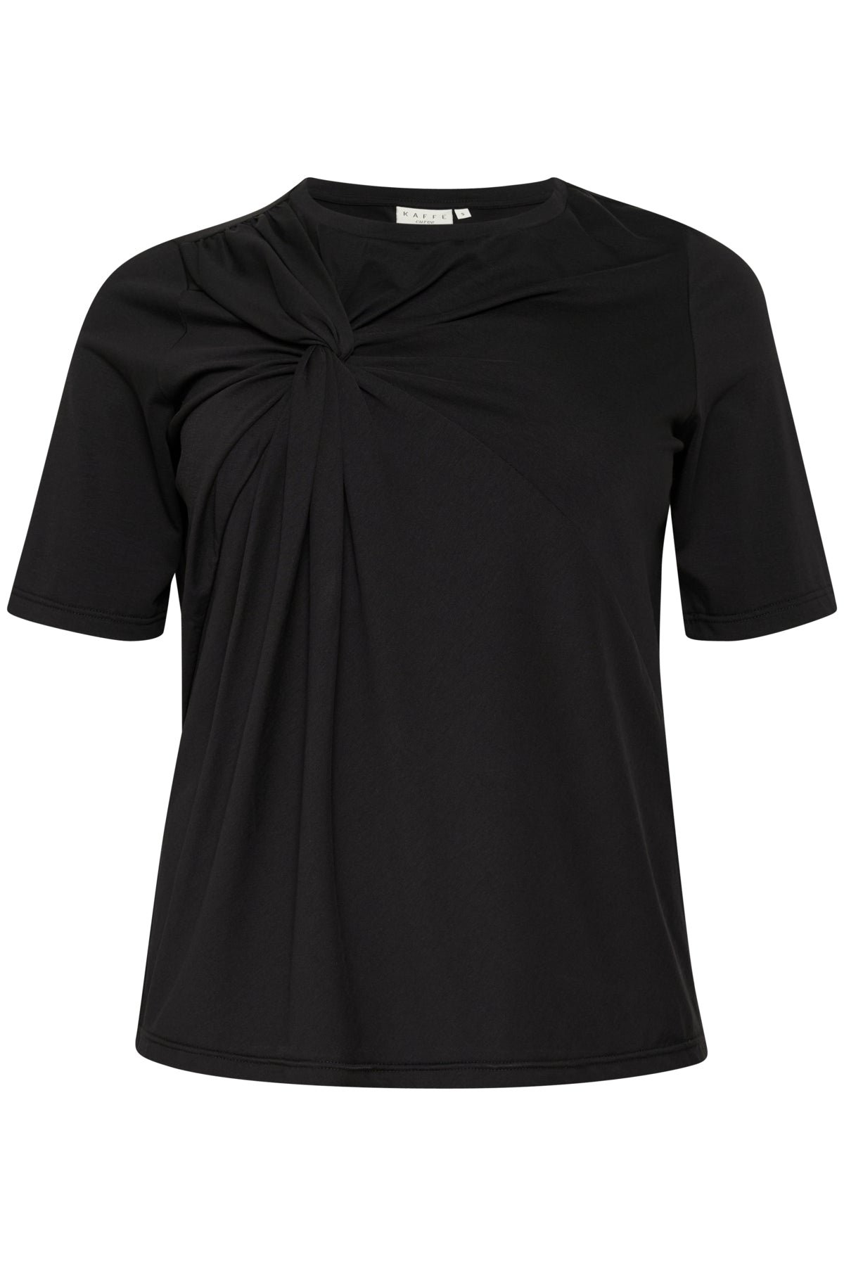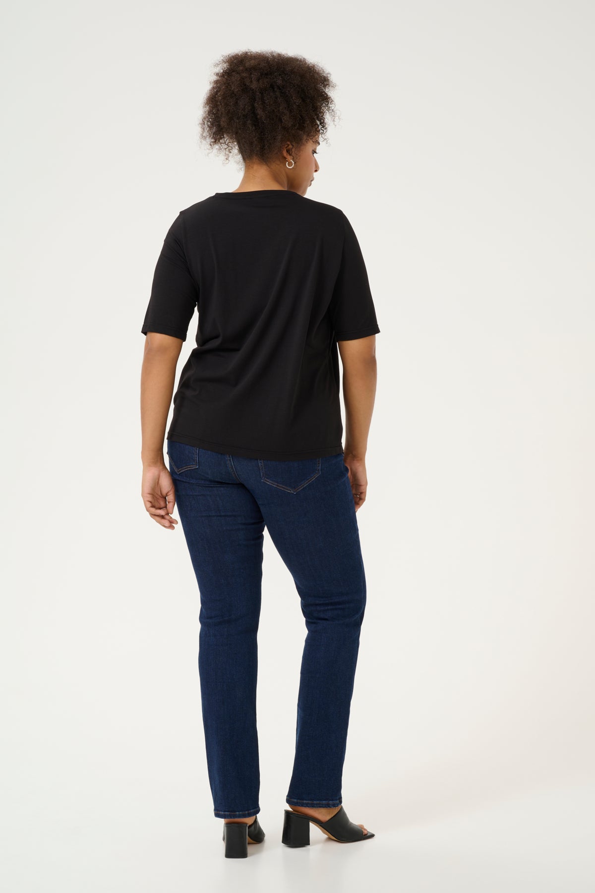 Super fin T-shirt fra Kaffe Curve med ½ lange ærmer, rund hals og en smart knude detalje over... Læs mere og se produktmål