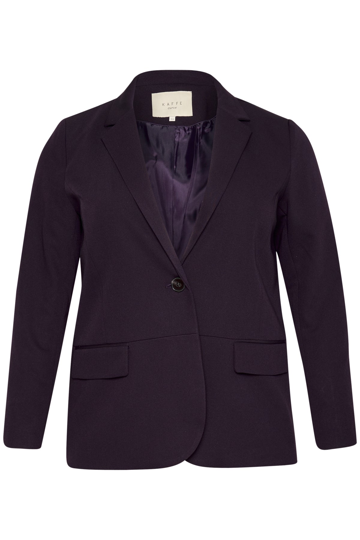 Blazeren fra KAFFE Curve med krave og revers, synlig knaplukning, paspolerede lommer.