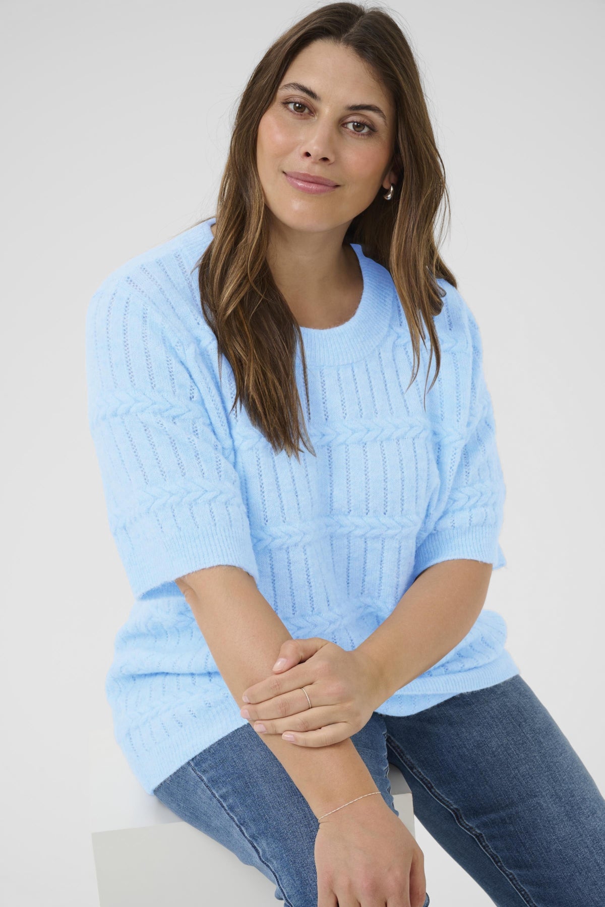 Kort ærmet strik med huld mønstre og snoninger. Rund hals og rib i kanten. S 42/44 Brystmål 120... Læs mere og se produktmål