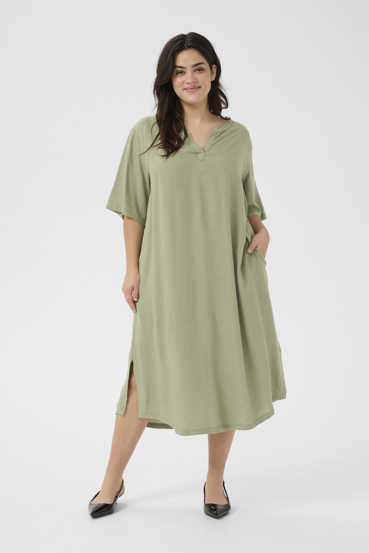 Lækreste viskose/hør kjole KCmille - Grøn