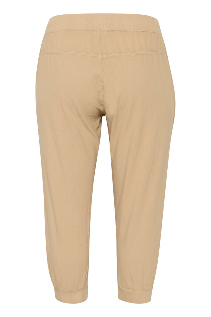 Buksen er 3/4 lang, let, sommerlig og smart. Buksen har en bred elastik samt bindebånd i liningen, buksebenet afsluttes ligeledes med en bred rib elastik. og så er der lommer i siden...