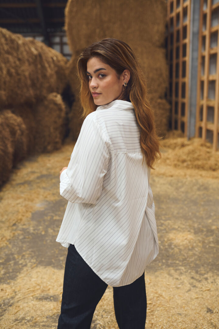 Denne klassiske hvide skjorte med den grå stribe - er vildt skøn!!! Skjorten er fra Kaffe Curve, den... Læs mere og se produktmål