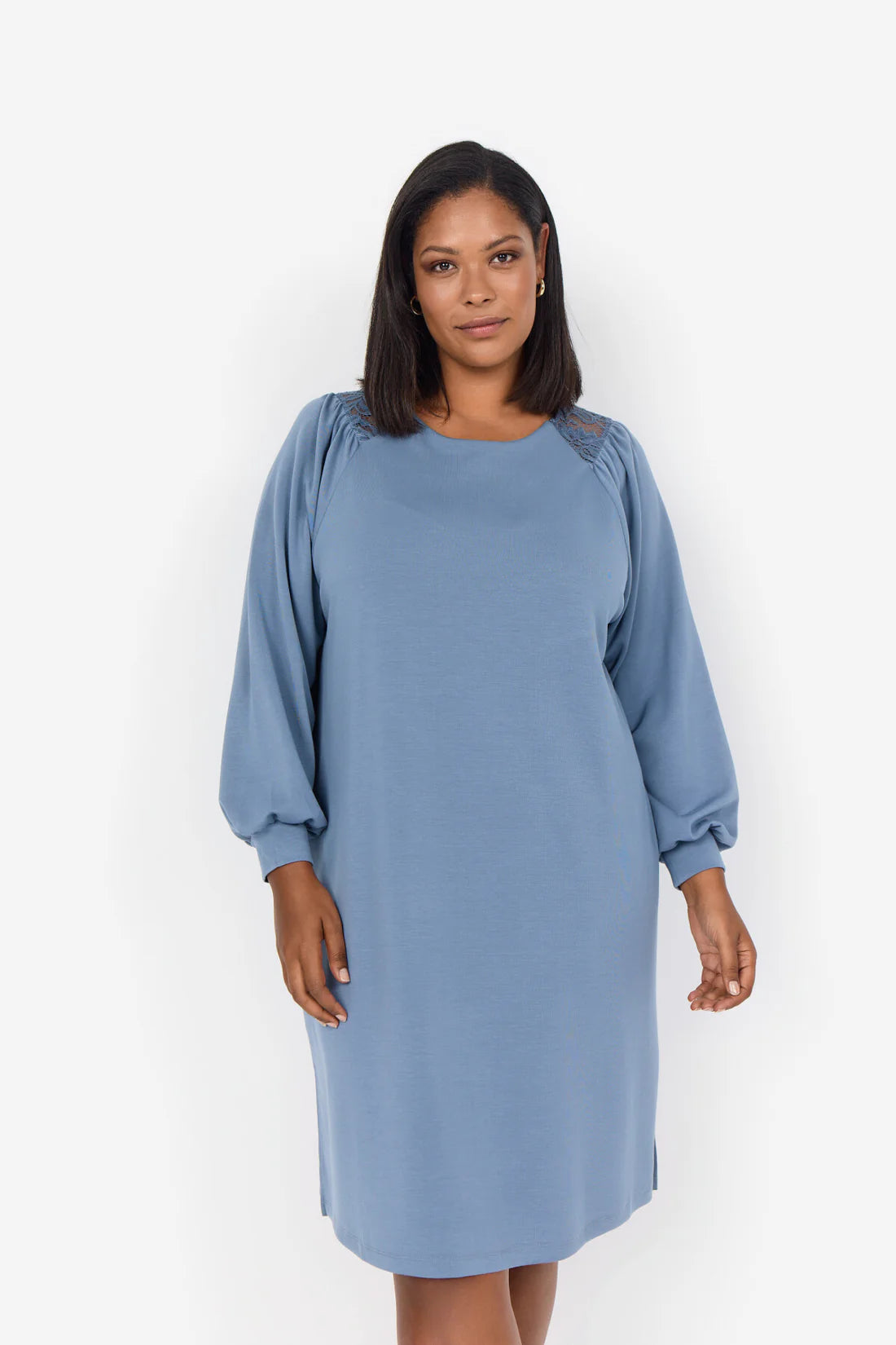 WA-Sabina 5 er en elegant kjole lavet af en blød blanding af modal, polyester og elastan. Kjolen har en rund halsudskæring, lange ballonærmer, en løs pasform, en midilængde og blondedetaljer. Style denne smukke kjole med dine yndlingshæle og en clutch for et formelt look.