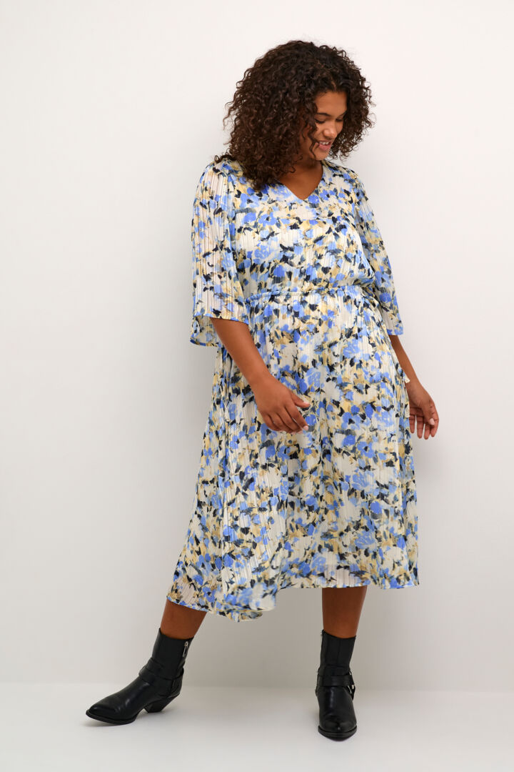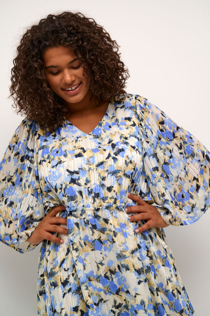 Skønneste "KCelana" Kjole fra Kaffe Curve - Blå/Gul Blomst