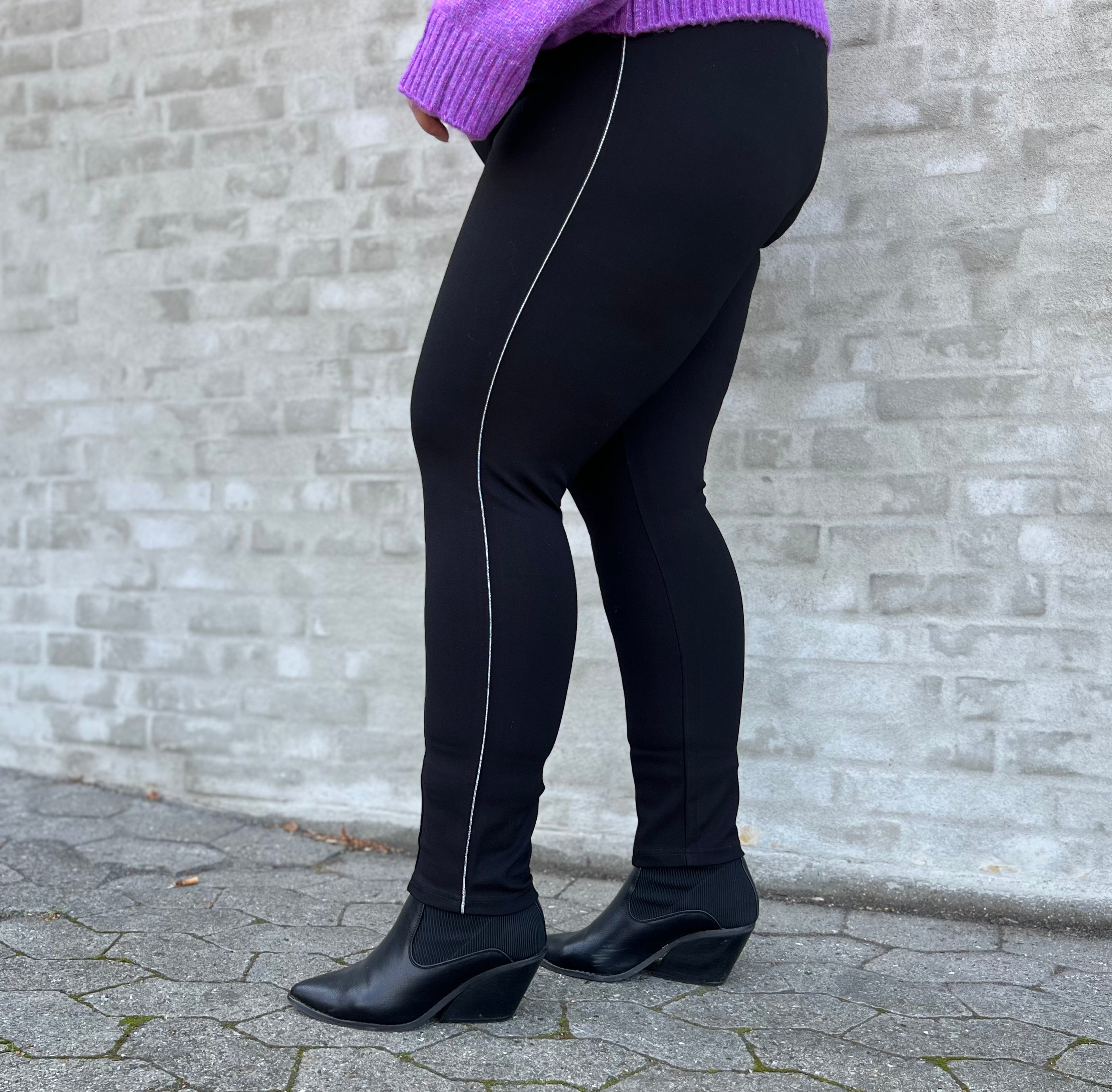 De er bare for lækre de her leggings fra ONly Carmakoma i en super fantastisk kraftig kvalitet.. De er elegante, smart og uundværlig - de sorte leggings med en skøn "sølv" stribe ned langs benet..