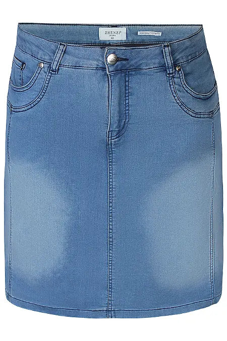 Den altid populære nederdel fra Zhenzi med den indvendige buks - her i en super lækker denim..
