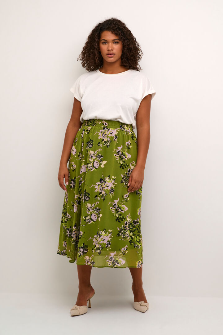 Sødeste "KCvima" Nederdel i lækre farver - Grøn/Blomst