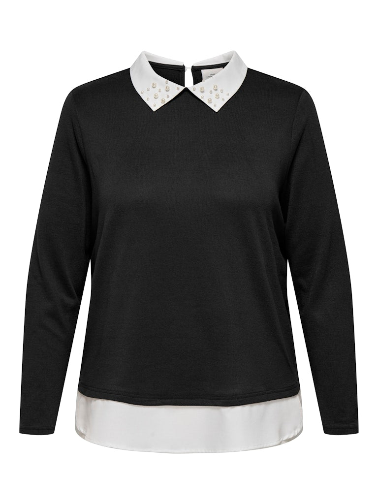 Bluse med skjorte krave med påsyet perler. Knaplukning i nakken. Lange ærmer og på syet skjorte i bunde... Læs mere og se produktmål
