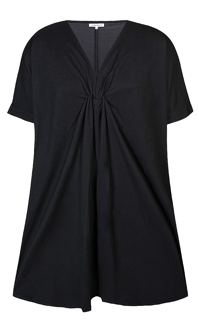 Kjolen er samlet ved udskæringen med en "knude", der gi'r de flottes detaljer og fald til den her lækre sag... Kjolen har korte ærmer og lommer i siden...