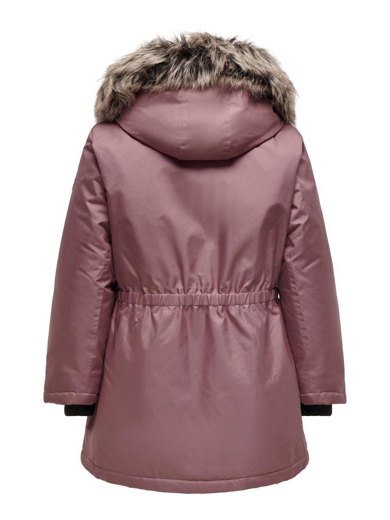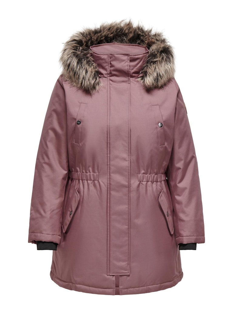 Parka coaten har hætte med aftagelig kant i imiteret pels. Den har skjult lynlås lukning og trykknapper, der er 2 brystlommer samt 2 lommer i siden, og så har den en elastik effekt ved taljen.. En lækker efterårs/vinter jakke her i den vildt flotte farve "Rose Brown" som er mørk rosa...