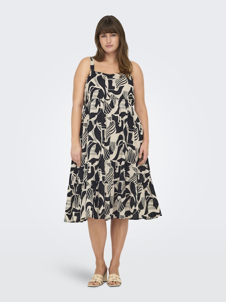 CARMALUSI Bomulds strop kjole - Sand/sort