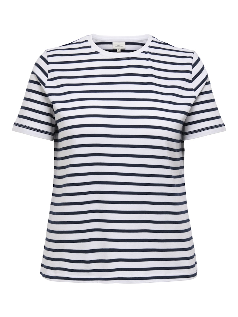 T-shirt med rund hals og striber.