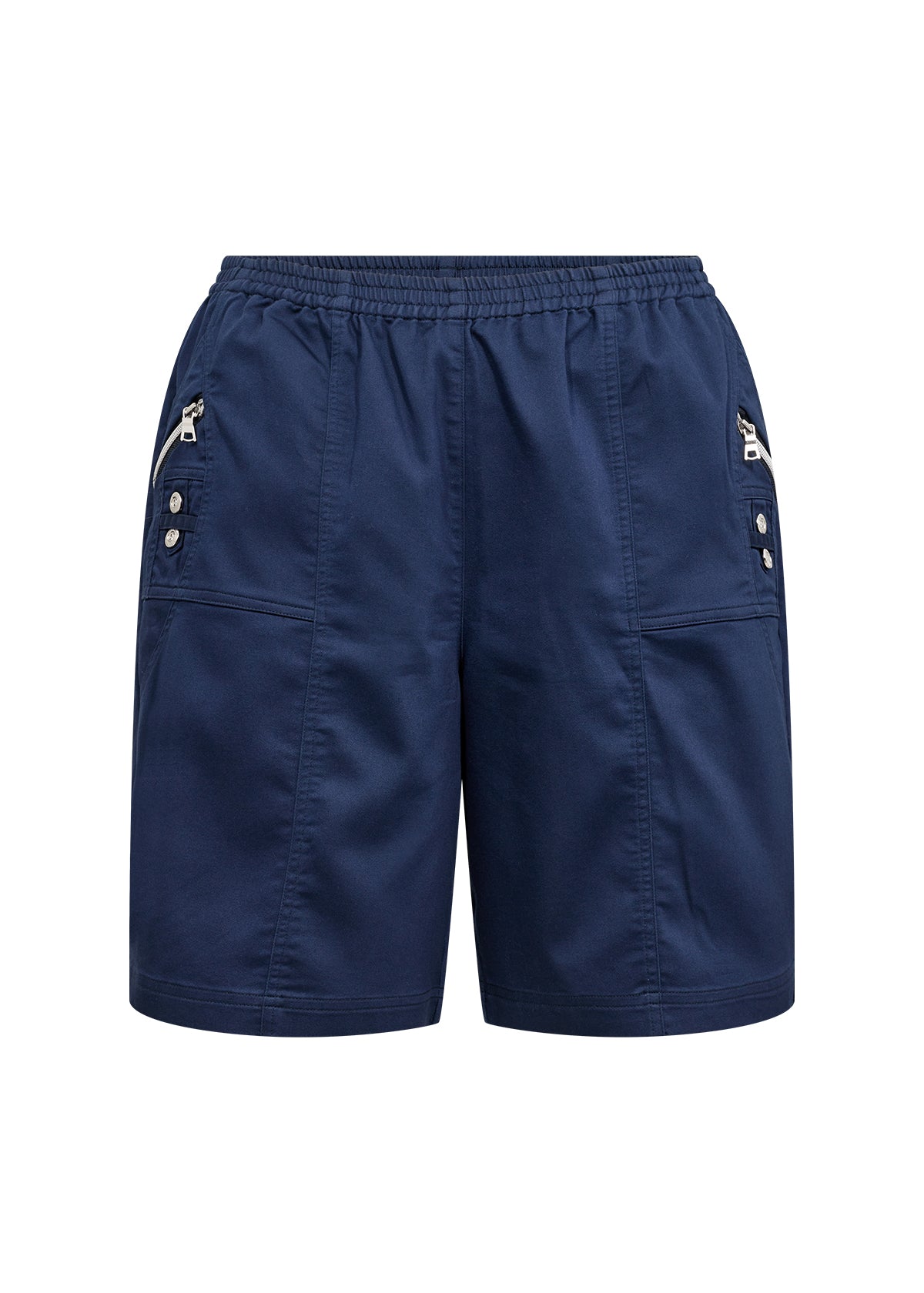 Super behagelige shorts med elastisk talje og praktiske lommer. Modellen har små pynte lynlåse og dekorative knapper i siden, som giver et sporty og feminint udtryk. Kommer i flere flotte farver og er lavet i en blød og let bomuldsblanding, der er skøn på varme dage.