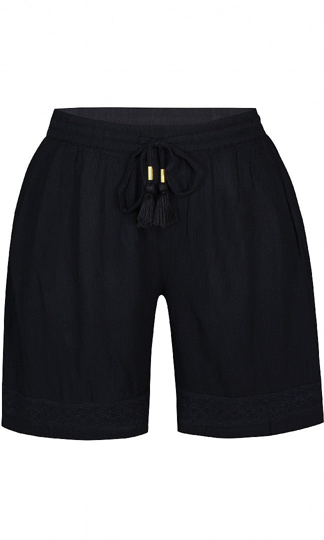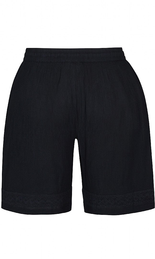 Let, sommerlig og smart. De her shorts har en bred elastik samt bindebånd i liningen, og så har de det sødeste blondebånd på hvert ben.. Skønheden har også lommer i siden..