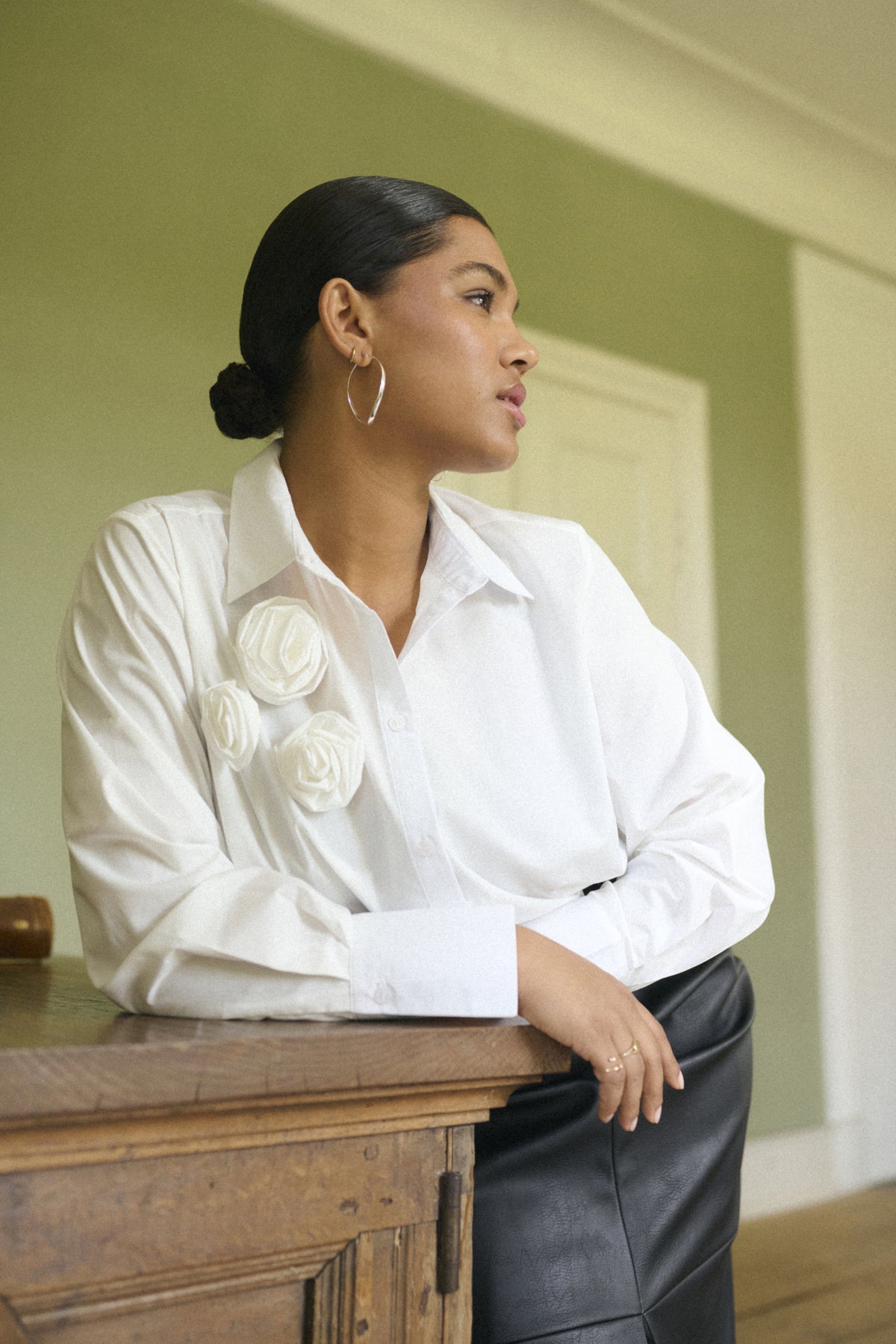 Skjorte med påsyet roser "KCroseta" - Hvid