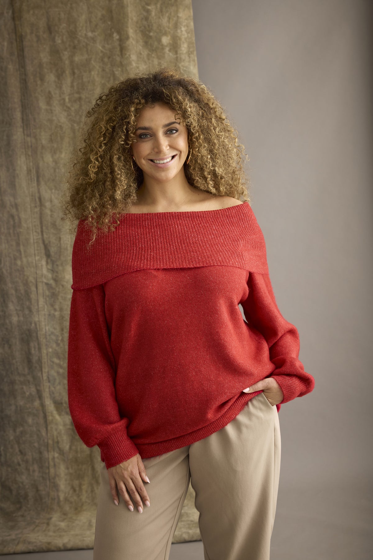 Strik bluse med høj hals "Zh-Elga" - Rød