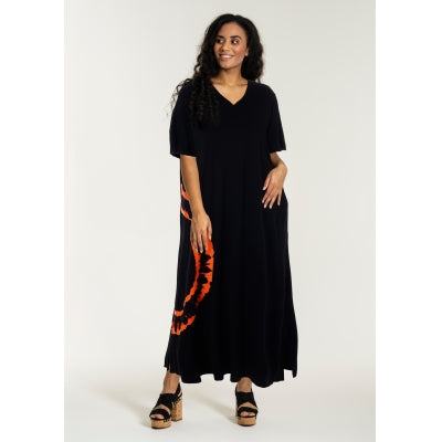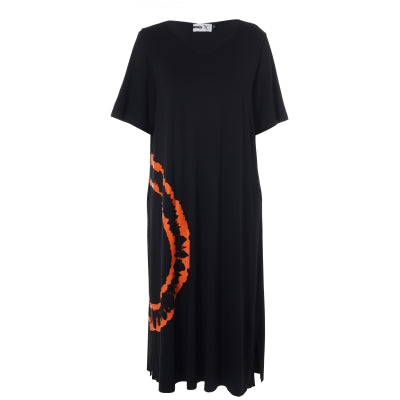 Skøn "Hana" kjole i viskose - Sort/Orange