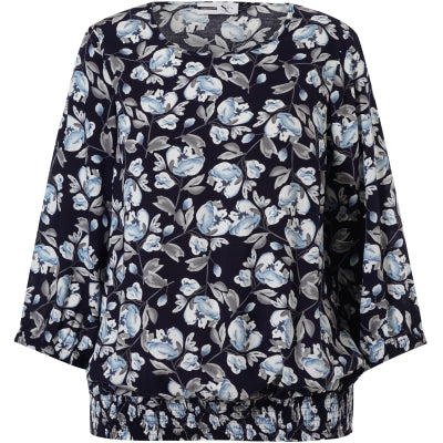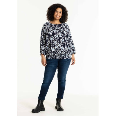 Fantastisk flot "Pamela" bluse - Navy/Hvid Blomst