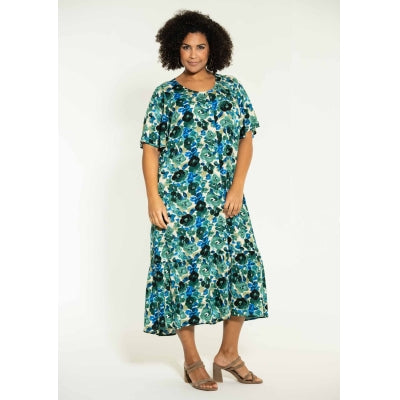 Smukke, friske grønne og blå farver der er på den her skønhed af en kjole fra Studio,,