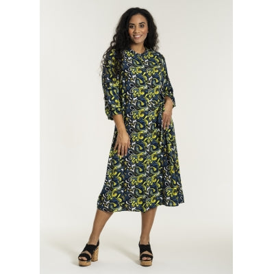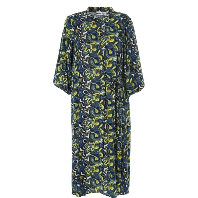 Lækker "Brianne" skjortekjole i viskose - Retro/Petrol